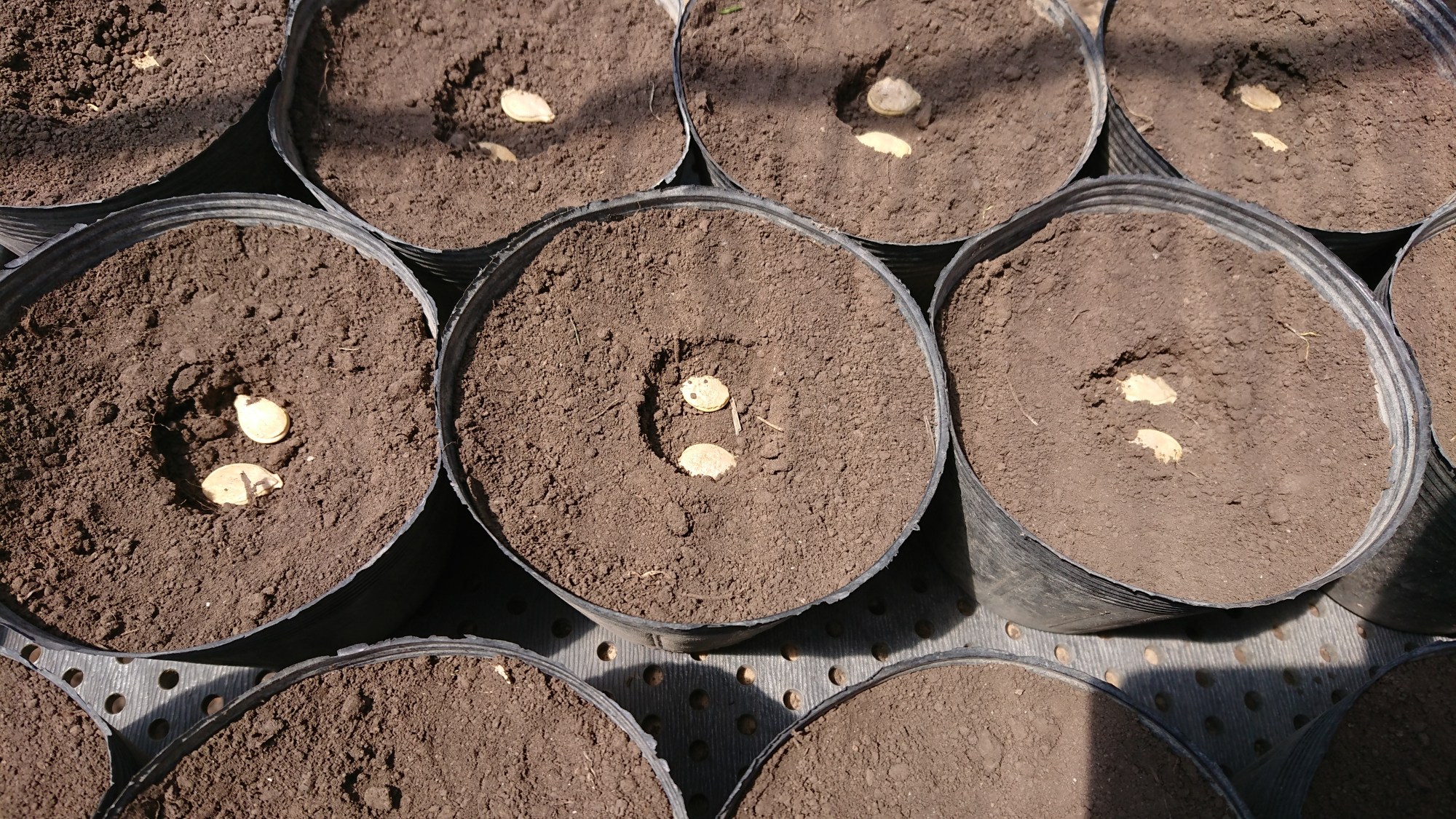 ファーム伊達家の野菜の中で、ズッキーニに次ぐ人気の「東京かぼちゃ」の種まきをしました。