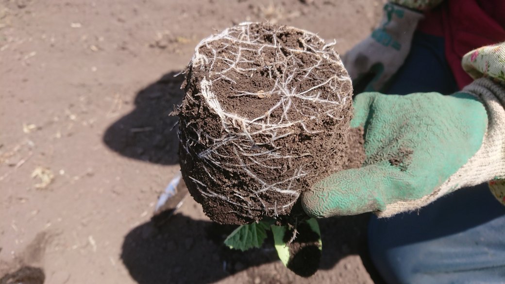苗としてはかなり若い苗ですが、根を傷めていないので、畑への根付きがよく元気に育ってくれます。