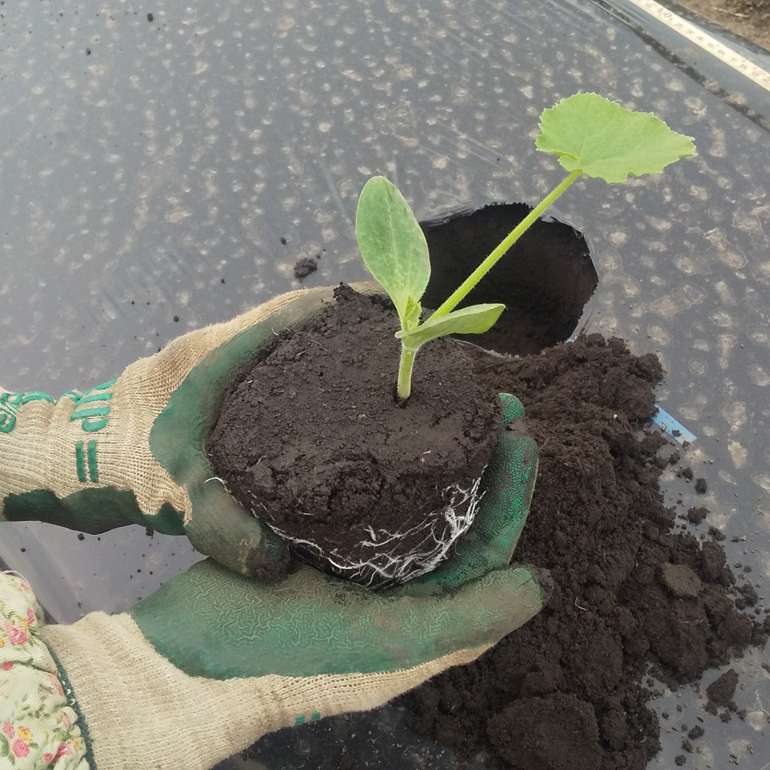 ウリ科の作物は根の再生力が弱いそうで、根をはがすと傷んでしまって、