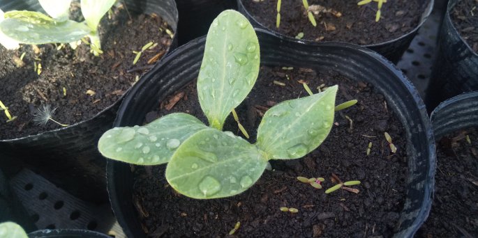 同じ畑で連作して自家採種していくことで、ズッキーニがその畑になじみ、畑がズッキーニに適したものになっていく、と考えています。