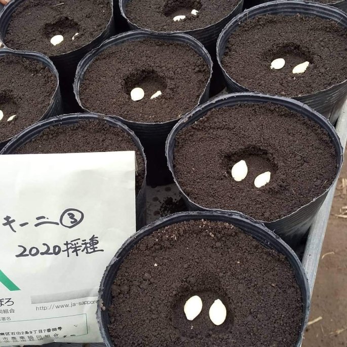 10.5㎝の育苗ポットに2粒ずつまきました。