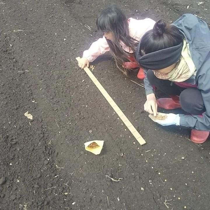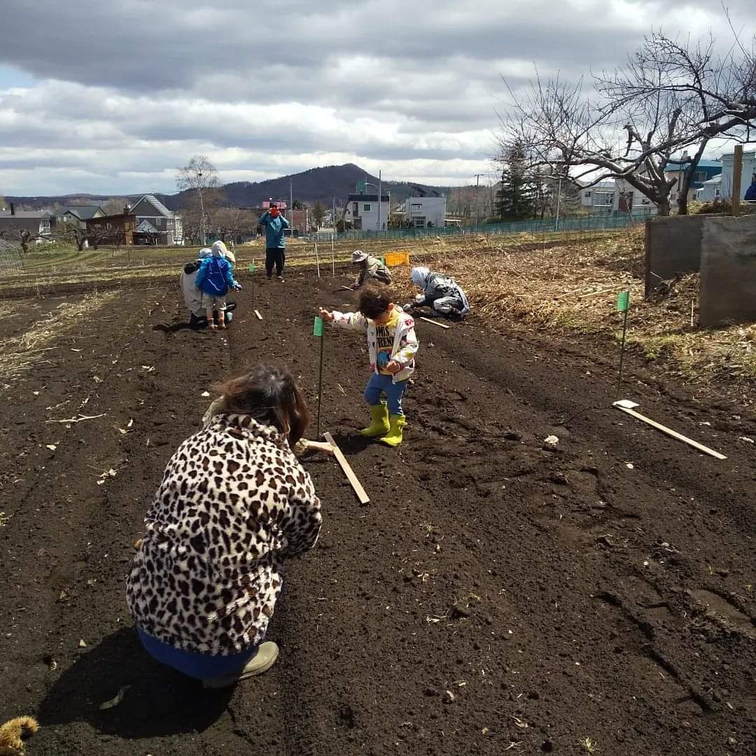 ファーム伊達家の人気野菜の一つのさやえんどうの種まきをしました。風があって肌寒い中でしたが、大人も子供も集中して美味しくな~れとまきました。