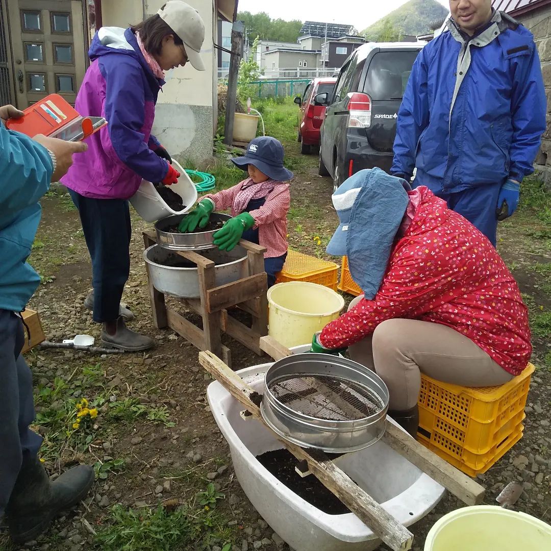 大人も子供も丁寧に作業してくださいました。次回のイベント(6月4日)の時までには可愛い苗に変身しているでしょう、その苗を畑に定植します。また、伊達寛記お手製の種まき道具を使って、大豆、ポップコーンの種まきをします。興味あるかた、お気軽にお問い合わせください。残席わずかです。