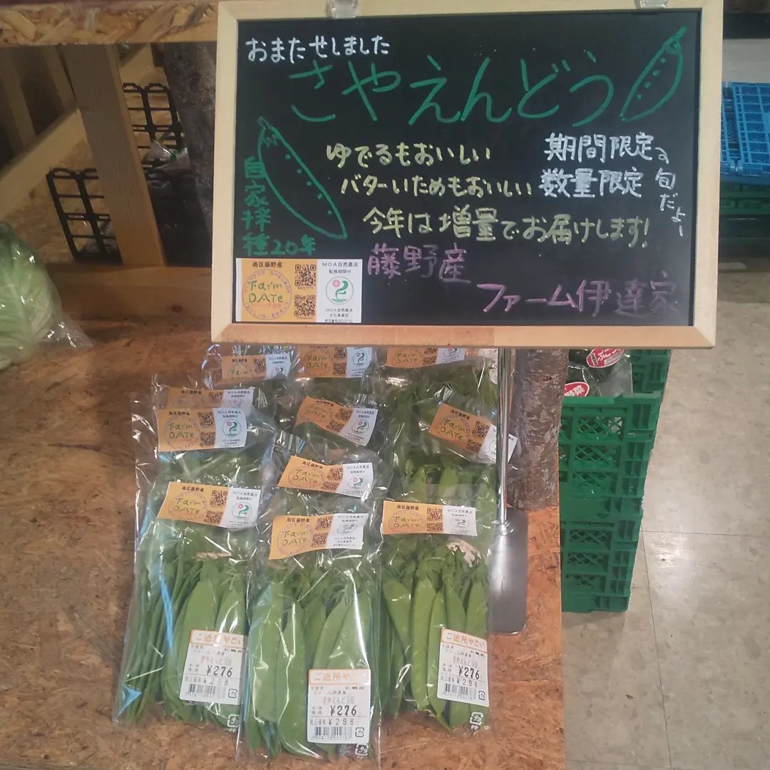 今日は「さやえんどう」を販売しています。